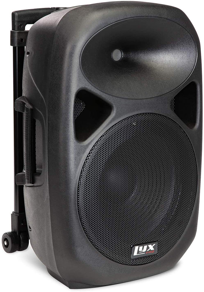 - Super portability – Bring this speaker to any event using the built-in carry handle and wheels.