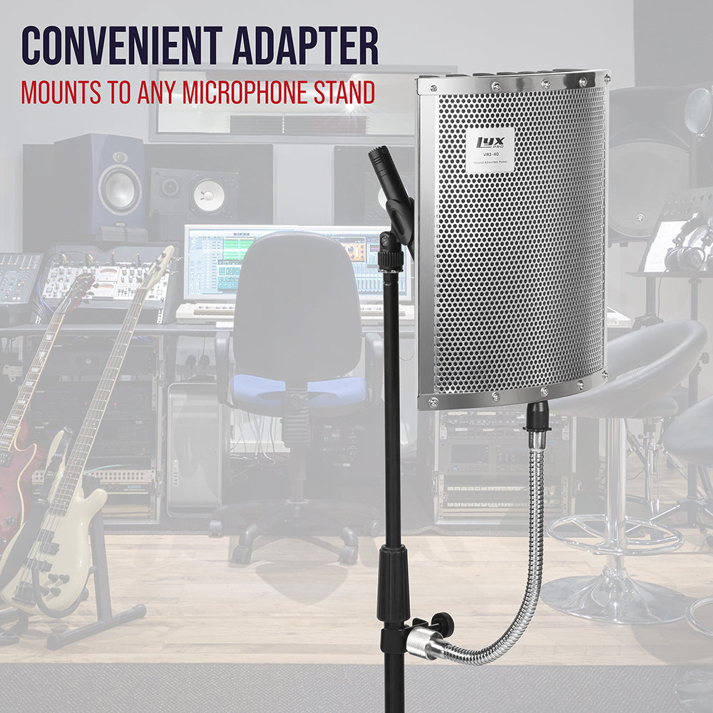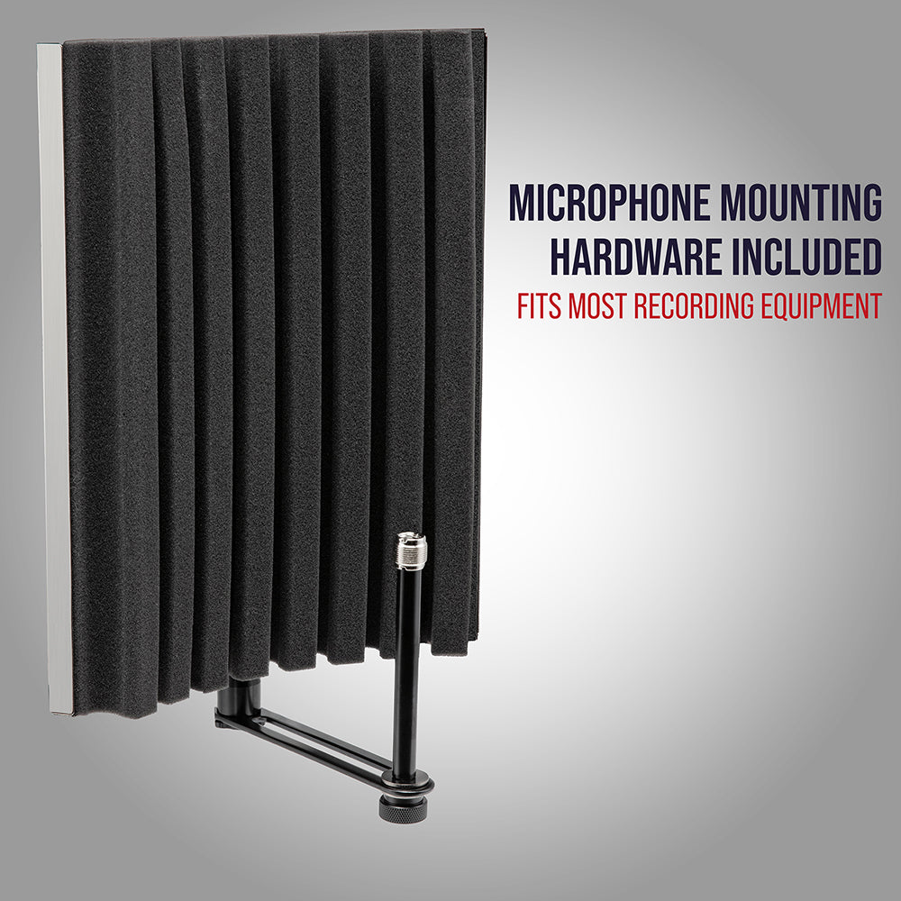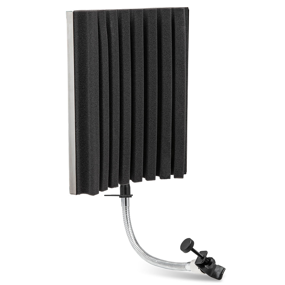 Each piece in the collection fits most standard mic stands, and comes with microphone mounting hardware for quick and easy set up. There’s an adjustable support bar, stand clamps, and stability feet to help keep everything in place. Plus folding panels lined with foam that surround the mic when you’re ready to hit “record”.