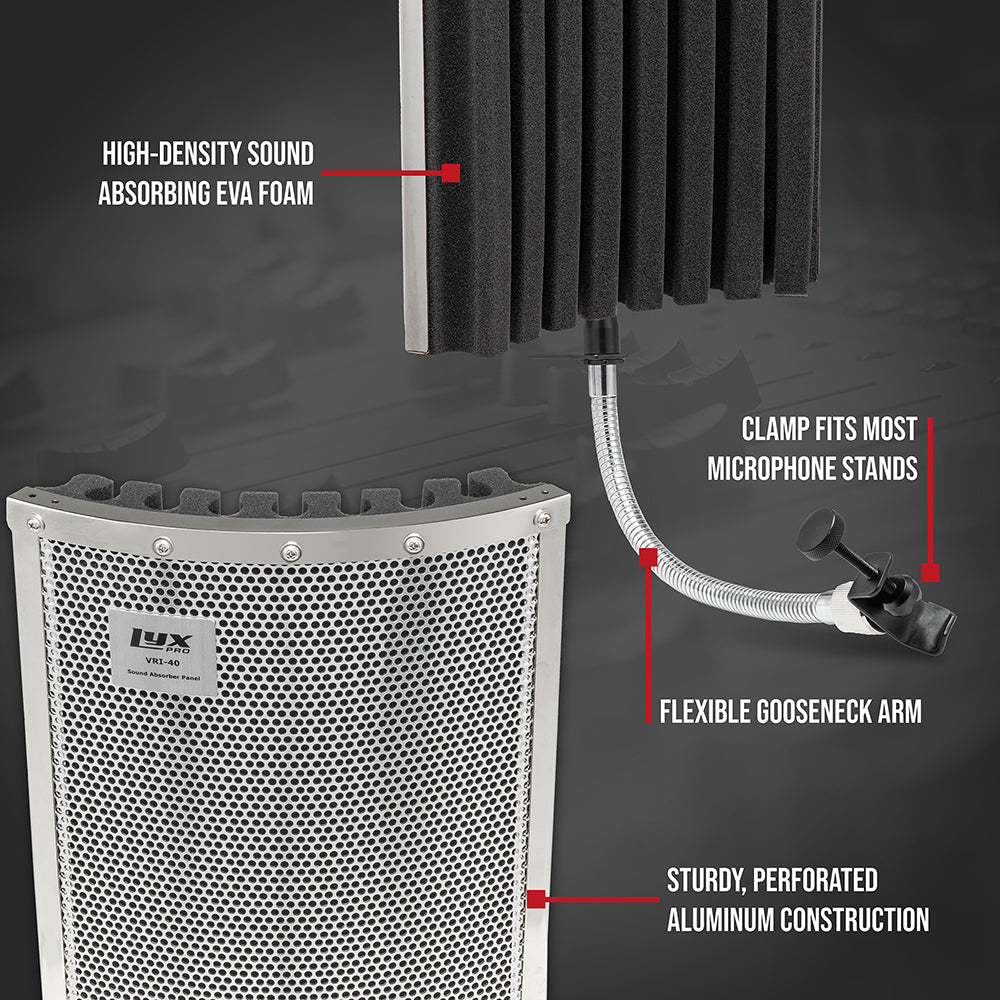 Our Isolation Shields collection definitely stands out in a crowd! Whether you’re blocking out noise for a microphone or vocals, the lightweight, sturdy perforated aluminum construction and high-density, sound-absorbing EVA foam liners are sure to rock the house!