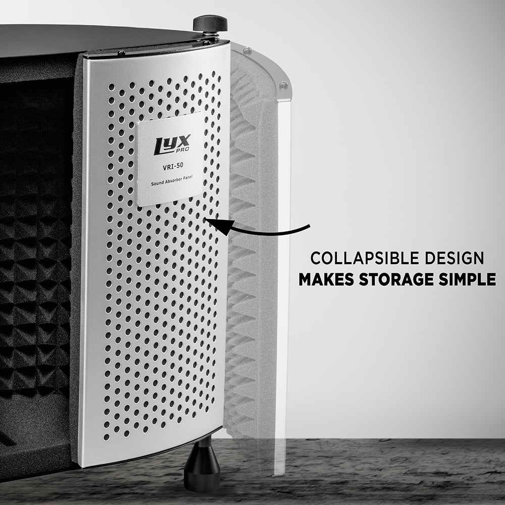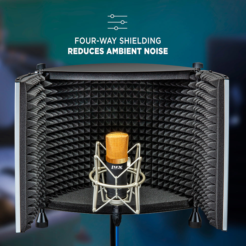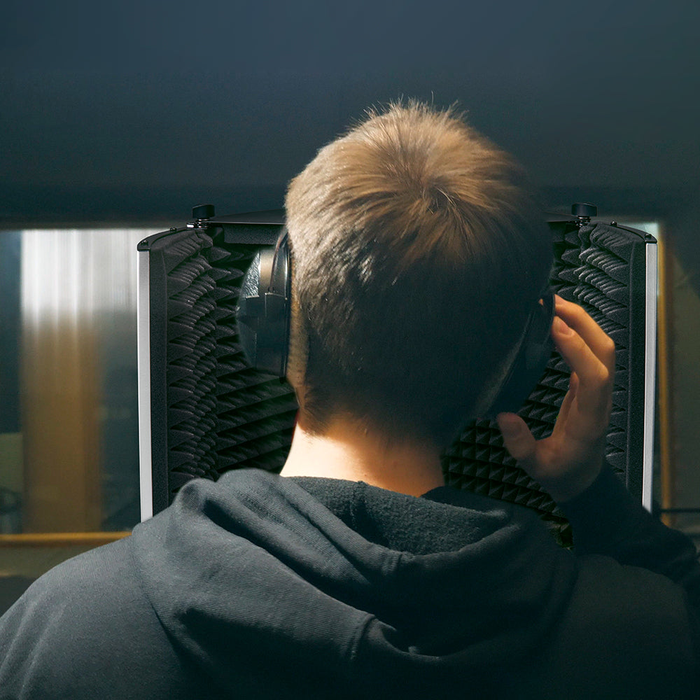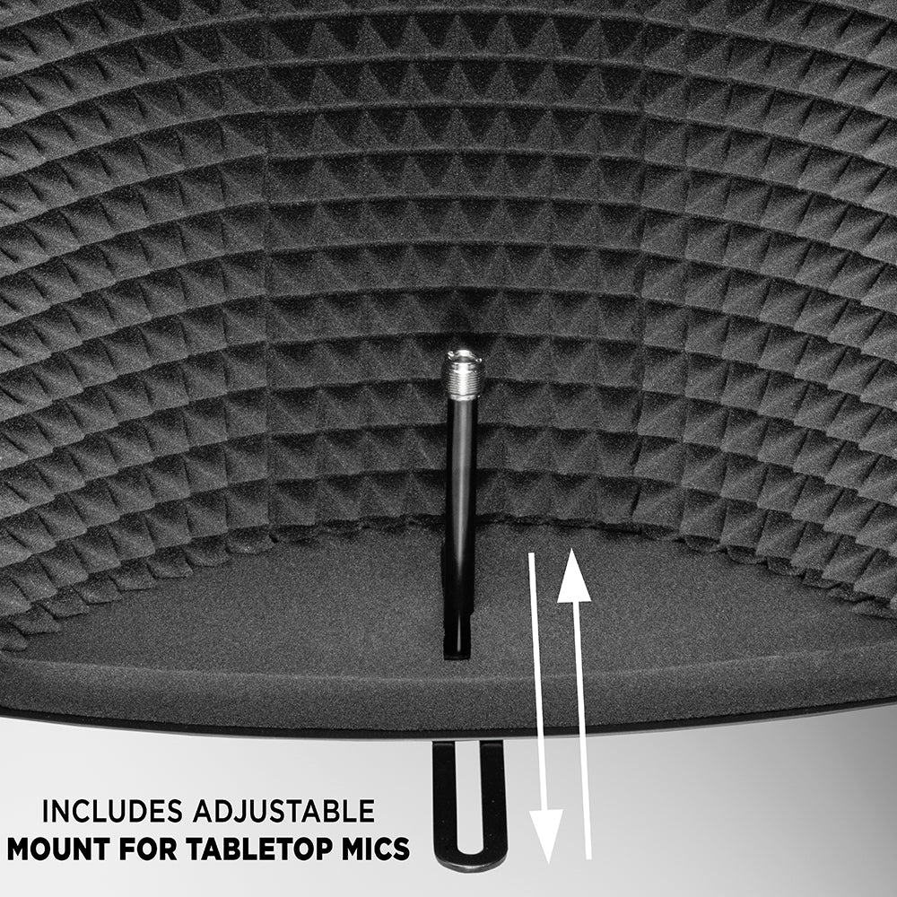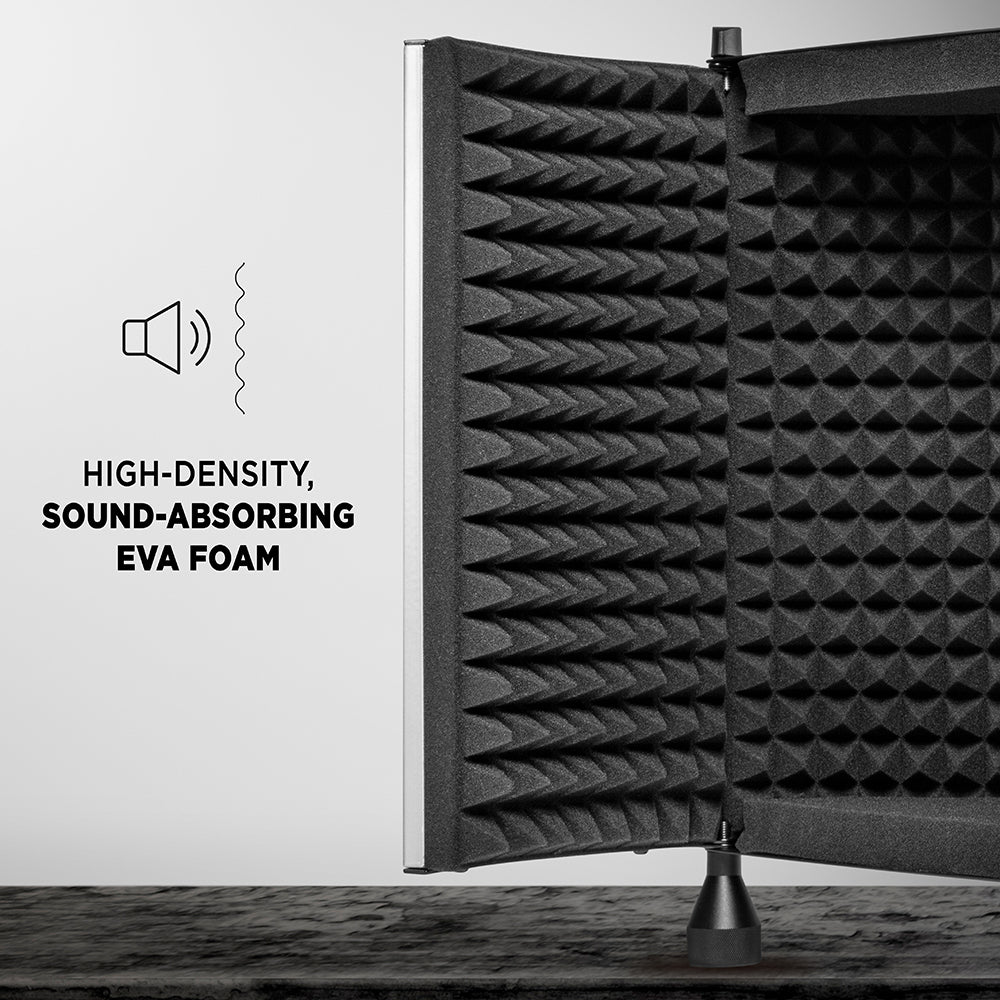 Each piece in the collection fits most standard mic stands, and comes with microphone mounting hardware for quick and easy set up. There’s an adjustable support bar, stand clamps, and stability feet to help keep everything in place. Plus folding panels lined with foam that surround the mic when you’re ready to hit “record”.